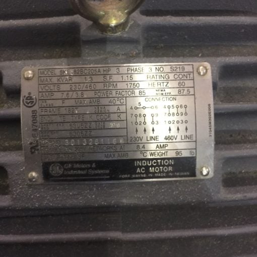 GENERAL ELECTRIC GE 5KE182BC205A 3HP 3 PHASE VOLTS 230/460 1750RPM