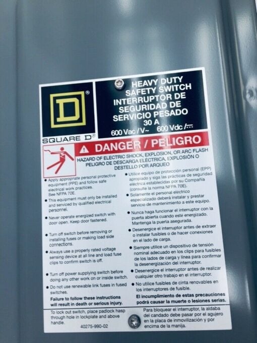 New | SQUARE D HU361 SQDHU361DS HEAVY DUTY SAFETY SWITCH 600 VOLT 30 AMP.