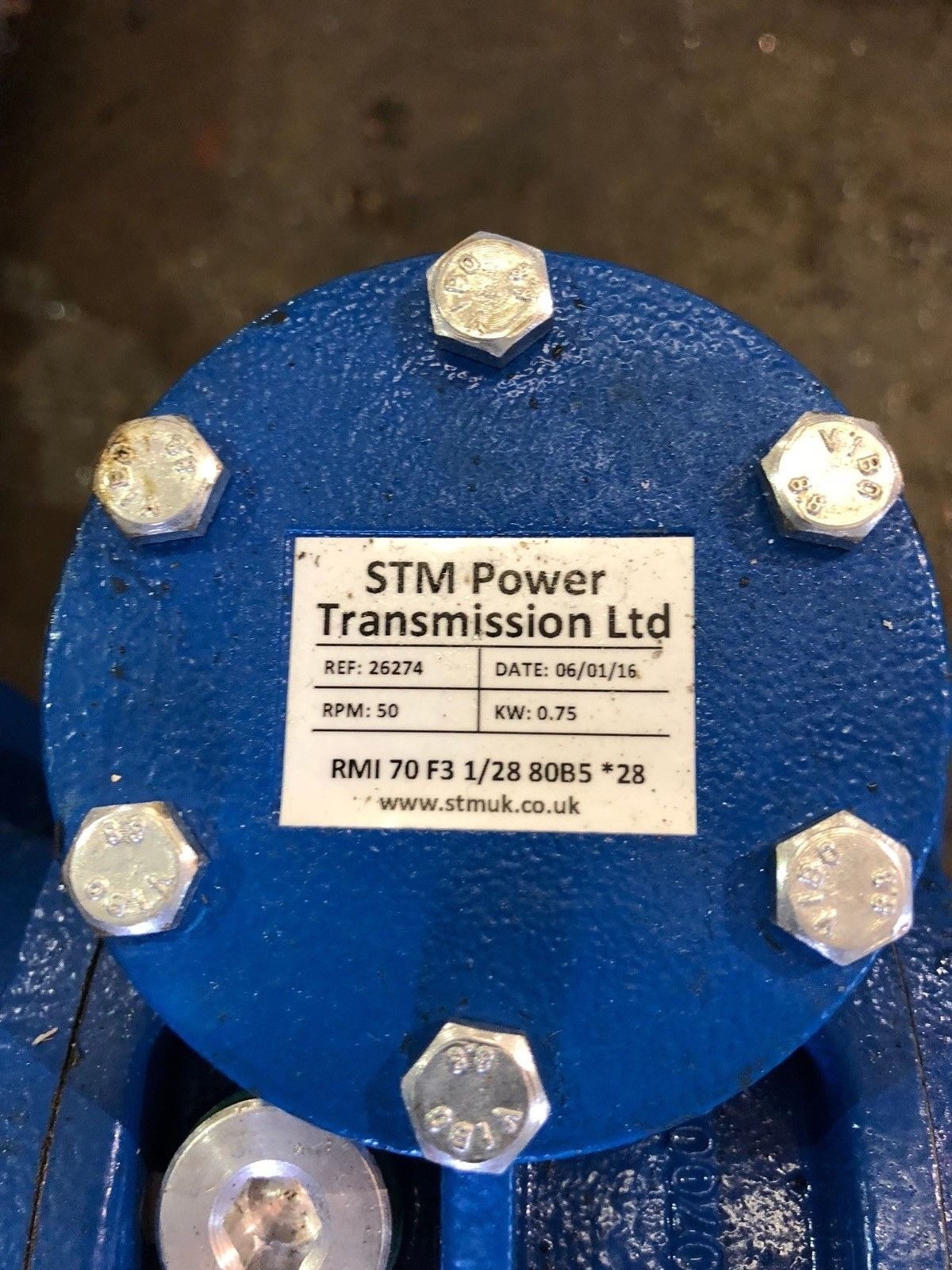 STM RMI 70 F 1/28 80B5 GEAR REDUCER W/ STM 80B4 MOTOR 1/1.2 HP
